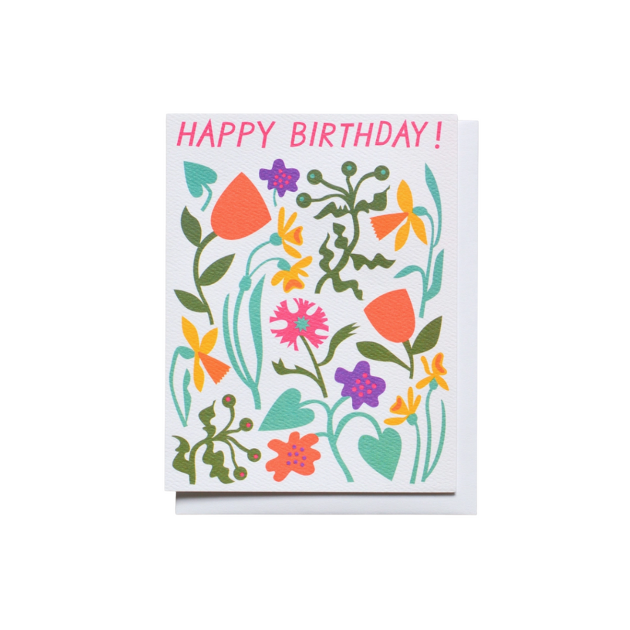 A cheery birthday card for a special someone, this beautiful new birthday card features mod Scandinavian inspired flowers and a Happy Birthday message.