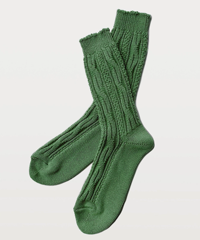 Okayok socks are knit on low-tech machines that are over 50 years old, which lends to their vintage quality and timeless aesthetic.
